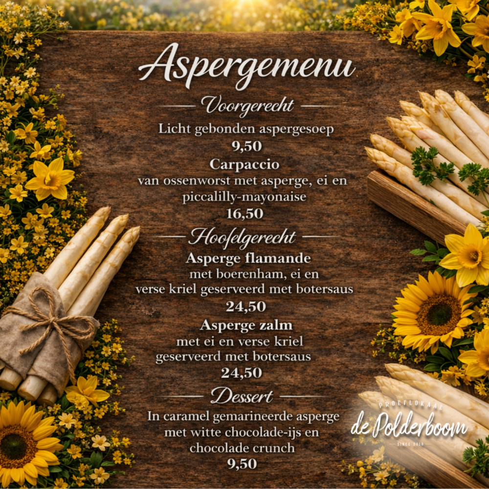 Yes, het is weer aspergetijd!Kom genieten van onze heerlijke aspergegerechten.